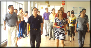 The left picture: On April 4, 2012, some international patients and students took a walk around the Taiping river to feel the breath of spring.